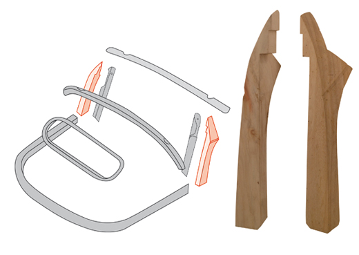 Kapframe montagebalk, hout, voor 8.57-7.64