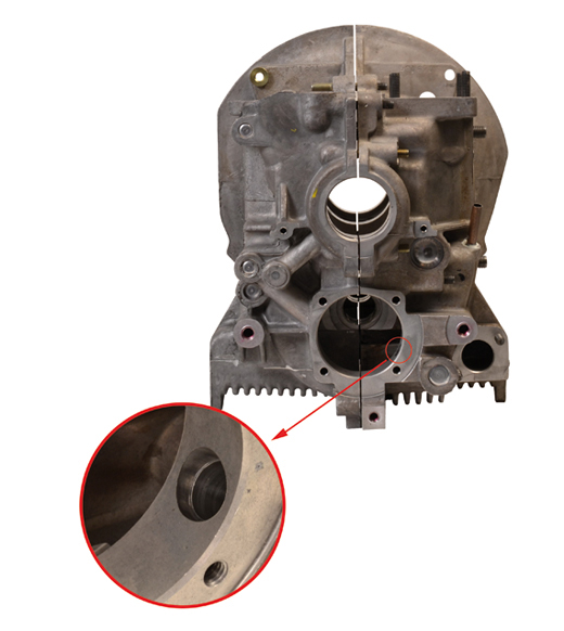 Carter voorzien van 2 plunjers (Dual) en nokkenasopening met groef (voor metalen dop) Kever, Karmann 1.3-1.6 8.69- Typ 181 (Kübel) 1.5-1.6 8.69-12.79 Bus T2 1.6 8.69- 7.79 Boring ø 90 mm Oliekanalen ø 10 mm Draadstangen ø 8 mm Oliezeef ø 16.5mm Carter is gemaakt van een AS41 legering(4% Aluminium, 1% Silicium). Carter is versterkt bij de derde cilinder.